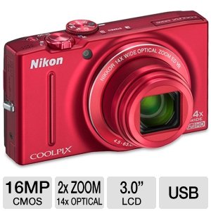 Buy Now! Nikon COOLPIX S8200 16.1 MP CMOS Digital Camera with 14x Optical Zoom NIKKOR ED Glass Lens and Full HD 1080p Video (Red)